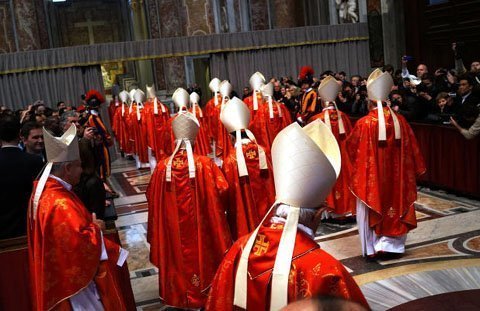 | Các hồng y tham dự buổi đại lễ trước khi họ vào nhà nguyện Sistine để bỏ phiếu, quyết định hồng y nào sẽ trở thành Giáo hoàng kế tiếp. |