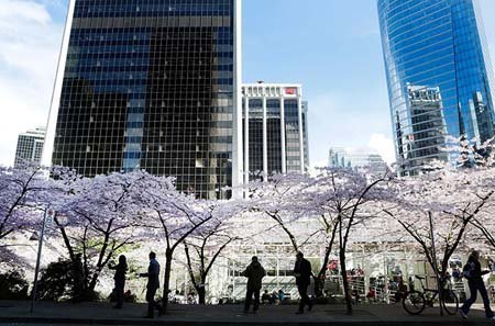 Hoa anh đào tại một quảng trường ở Vancouver, Canada.