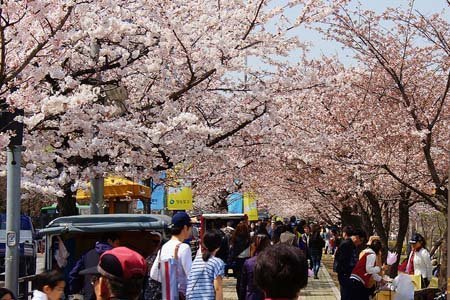 Du khách thưởng ngoạn hoa anh đào tại Seoul, Hàn Quốc.