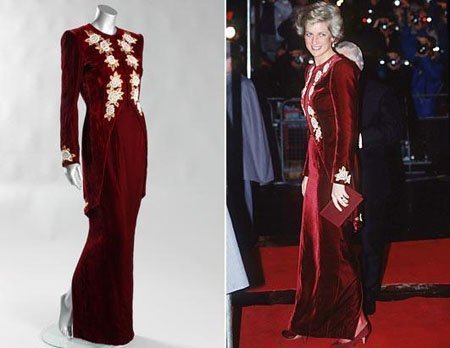 Bộ sưu tập bao gồm một chiếc áo choàng nhung màu xanh của Victor Edelstein được Công nương xứ Wales diện trong một bữa tiệc vào năm 1985 tại Nhà Trắng, nơi bà đã nhảy với nam diễn viên John Travolta.