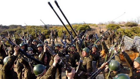 | Binh sỹ Triều Tiên thể hiện quyết tâm chiến đấu. (Ảnh: Yonhap/ KCTV) |