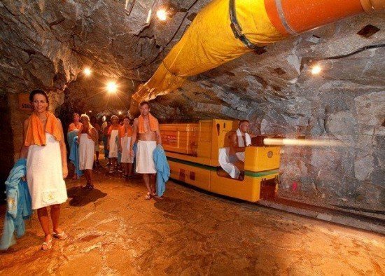 Sau khi kiểm tra, bệnh nhân được hướng dẫn thay đồ và lên những chuyến tàu đưa họ đi khoảng 2km bên trong hang núi để đến với phòng điều trị. Tại đây, họ được nằm thư giãn trên những chiếc giường gỗ.