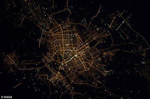 | Các phi hành gia ở trạm không gian chụp ảnh Cleveland, bang Ohio, Mỹ |