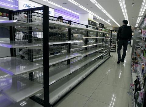 Người dân thi nhau dự trữ thực phẩm, sữa và các mặt hàng thiết yếu khác khiến cho nhiều cửa hàng và siêu thị trống trơn.