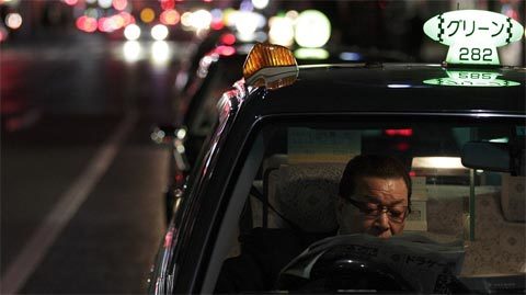 Một tài xế taxi đọc báo khi đợi khách trên một con phố vắng. (Ảnh: AP)