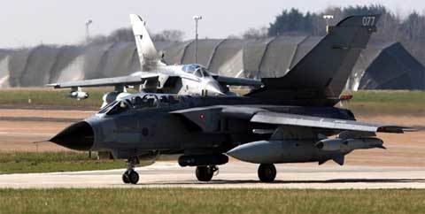 Máy bay của Anh thực hiện một loạt nhiệm vụ, với RAF Tornados nhằm vào các mục tiêu trên đất liền, máy bay chiến đấu Typhoon thực hiện các chiến dịch không kích, máy bay AWACS và Sentinel R1 giúp do thám và vẽ sơ đồ mặt đất. Các máy bay này sẽ đóng ở nam Italia và chịu sự chỉ huy của quân Mỹ tại căn cứ hải quân tại Naples.