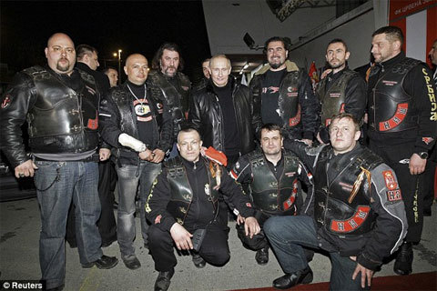 Những hình ảnh đầy nam tính của Thủ tướng Nga Putin lại một lần nữa xuất hiện hôm 24/3 khi nhà lãnh đạo này lang thang cùng đội xe mô tô Sói đêm khi ở thăm Belgrade.