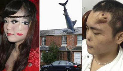 Cá voi đâm xuống nóc nhà, cô gái có hai mặt hay chàng trai mọc mũi trên trán...là những hình ảnh ấn tượng và khó tin trong năm 2013.