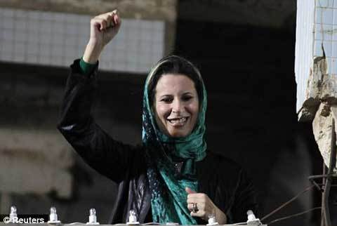 Aisha Gaddafi, từng học luật ở Paris và là một trong những luật sư bảo vệ cho cựu Tổng thống Iraq Saddam Hussein tuyên bố, quân nổi dậy chống lại cha cô là "khủng bố".