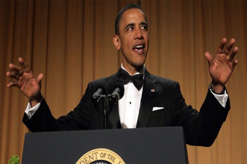 Nếu bạn cho rằng Obama không thể giữ một bộ mặt lạnh như tiền, hãy nghĩ lại. Diễn viên hài Seth Meyers từ chương trình Saturday Night Live có câu nói đùa về tung tích Bin Laden trên chương trình C-SPAN (chuyên về tin tức Quốc hội). "Nhiều người nghĩ Bin Laden đang ẩn náu tại vùng Hindu Kush, nhưng liệu các bạn có biết, mỗi ngày từ 4-5h, ông ta thường dẫn chương trình trên C-SPAN. Sau vài giây, máy quay chuyển tới Obama, người đang nở một nụ cười lớn và cười với đám đông. Vào thời điểm này, đội ngũ an ninh quốc gia của Obama đã chắc chắn họ biết đích xác Bin Laden đang ở đâu.