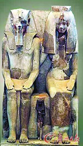 | Tượng điêu khắc Nữ hoàng Tiye và pharaoh Amenhotep III ngồi ngang hàng |