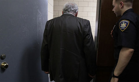 Ảnh chụp ngày 18/5: Strauss-Kahn tại nhà tù đảo Rikers, nơi ông bị giam vài ngày trước khi được tại ngoại. (Ảnh: New York Daily News/Getty Images)