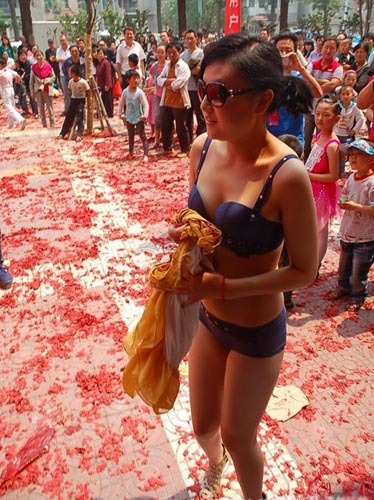 thon chỉ cần cởi quần áo, đứng trước đám đông trong 3 tiếng đồng hồ sẽ nhận được