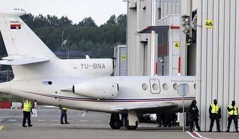 | Một máy bay được tin là chở nghi phạm Mladic hạ cánh ở sân bay Rotterdam. (Ảnh: Reuters) |