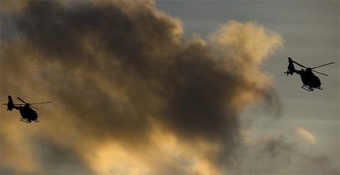 | An ninh thắt chặt: Cảnh sát và binh sĩ bảo vệ làm nhiệm vụ sau khi máy bay hạ cánh. (Ảnh: Reuters) |