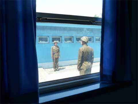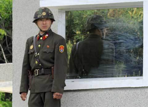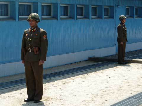 Lính Triều Tiên đứng gác tại Panmunjom.