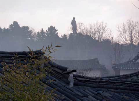 Một bức tượng lớn của ông Kim Nhật Thành đứng sừng sững ở đường