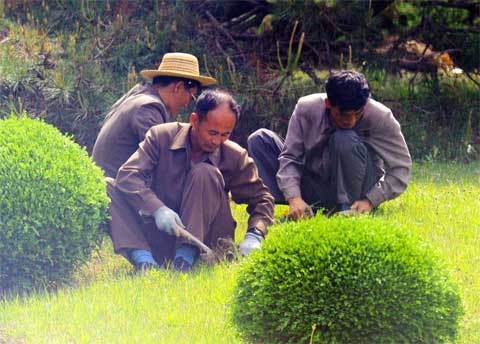 Người Triều Tiên từ các nông trường tập thể làm việc dọc theo một con đường gần biên giới với Trung Quốc ở tỉnh Bắc Pyongan hồi tháng 4.
