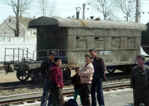 Người Triều Tiên đứng chờ trên sân ga ở tỉnh Bắc Pyongan, tuyến đường sắt chính nối giữa thủ đô Bình Nhưỡng và thành phố biên giới của Trung Quốc là Dandong
