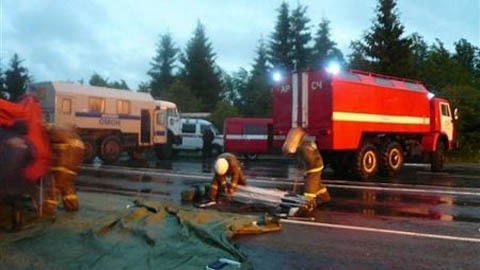 Hãng tin RIA Novosti và ITAR-Tass dẫn lời các quan chức Bộ Tình trạng khẩn cấp Nga cho hay chiếc máy bay Tupolev Tu-134 đã phải hạ cánh khẩn cấp trên đường cao tốc từ Moscow tới thành phố Petrozavodsk, 8 người sống sót đã được đưa tới bệnh viện Petrozavodsk và đang trong tình trạng nguy kịch.