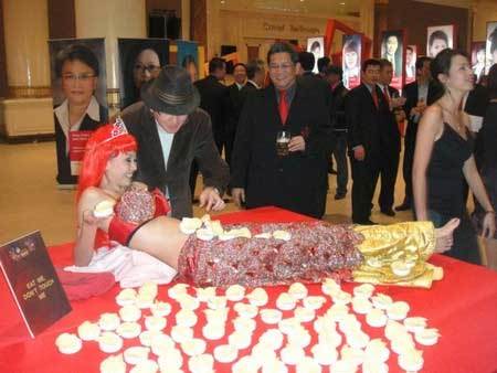 Singapore cho phép khách hàng dùng bữa trên cơ thể người mẫu đang phô diễn đầy
