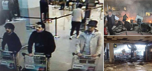 Hãng tin Belga đã công bố bức ảnh cho thấy có ba nghi phạm trong vụ đánh bom ở sân bay Zaventem,.