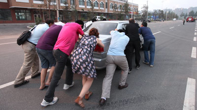 10 nhân viên tại Trung Quốc đã cùng nhau ì ạch đẩy một chiếc xe của sếp mình suốt quãng đường dài gần 5 km từ nơi ăn tiệc về nhà.