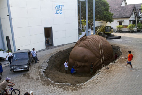 Được biết, tác phẩm điêu khắc đầu của Luz, con gái họa sỹ Eddi Prabandono, được làm từ 25 tấn đất sét đặc biệt và được đem ra trưng bày tại triển lãm nghệ thuật thường niên Jog Art 2011.
