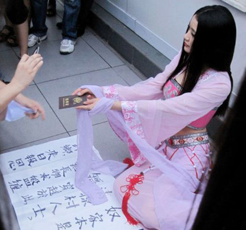 Không ít người đã đổ dồn cặp mắt tò mò của mình về phía cô gái mặc đồ cổ trang và đang ngồi xin tiền tại một ga tàu điện ngầm ở Thượng Hải để trở về ...500 năm trước.