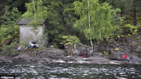 Tại đảo Utoya, một số người đã nhảy xuống sông tìm cách thoát thân |