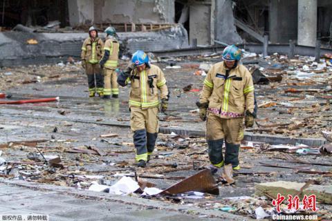 | Đội cứu hộ đang cố gắng giúp người đàn ông bị thương sau vụ nổ |