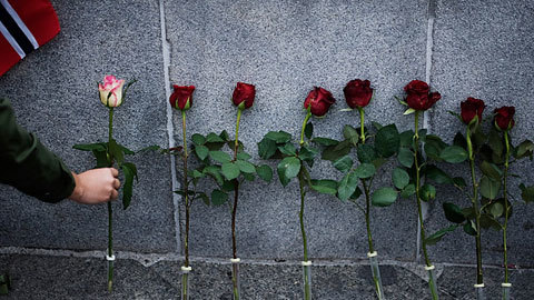 | Những bông hồng do người dân Na Uy mang tới đặt dưới chân một tòa nhà ở thủ đô Oslo để tưởng nhớ những nạn nhân bị sát hại trong vụ tấn công kép hôm 22/7. (Ảnh: Getty) |