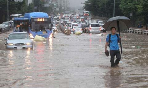 | Cuộc sống của người dân Hàn Quốc chao đảo vì lụt lội. (Ảnh: Yonhap) |