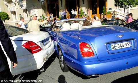 Thảm họa đâm xe xảy ra khi một cô gái tóc vàng lái chiếc Bentley Azure trị giá 250.000 bảng Anh đâm vào một loạt xế xịn gồm Mercedes, Ferrari, Porsche và Aston Martin lúc đang thương lương đường đi quanh Place du Casiono. Vụ đâm xe gây thiệt hại 700.000 bảng Anh.