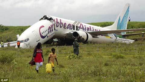 chở 163 người đã vỡ làm đôi khi hạ cánh tại Guyana, Nam Mỹ. Tuy nhiên, may mắn