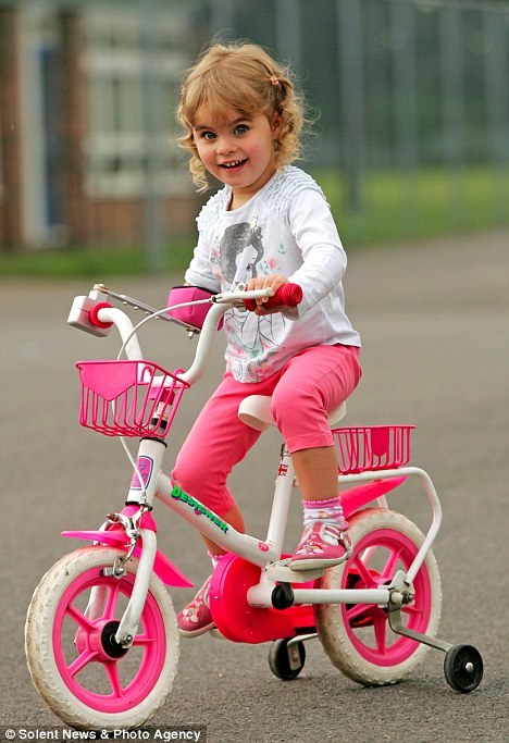 Bé Sophie rất thích thú với chiếc xe đạp mới của mình (Ảnh: Solent News&Photo Agency) |