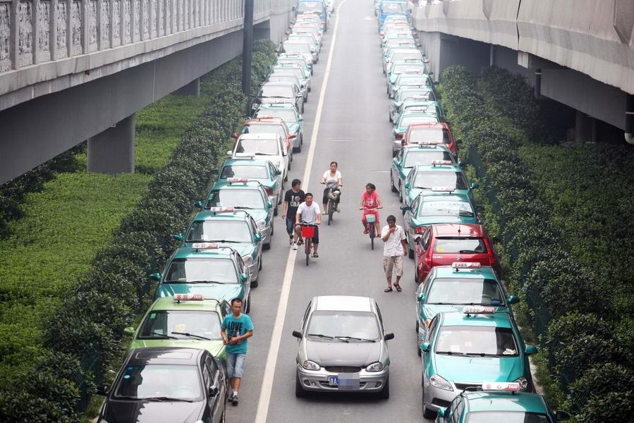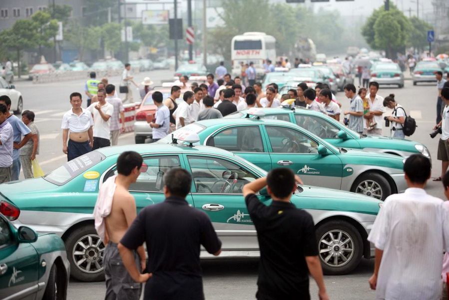 Các tài xế taxi ở Hàng Châu (Chiết Giang, Trung Quốc) đã thể hiện thái độ phản kháng bằng cách tập chung ở hàng loạt các điểm đỗ xe tại thành phố, ngoài ra họ còn đỗ xe bên lề đường và từ chối đón khách.