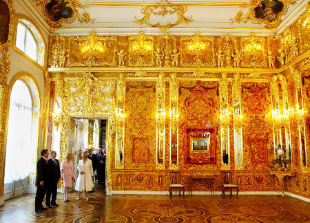 | Phòng Hổ phách được tái xây dựng tại cung điện Catherine từ năm 1979-2003 |