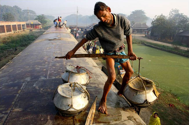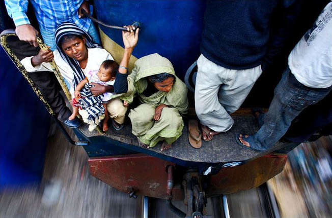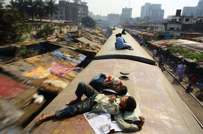 Sau khi kết thúc một ngày lao động mệt mỏi, những người lao động nghèo ở Bangladesh lại trèo lên nóc tàu để trở về nhà. Mặc dù phải đối mặt với nhiều nguy hiểm nhưng họ vẫn cảm thấy rất thoải mái vì đi tàu mà không mất một xu nào.