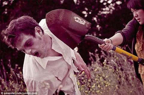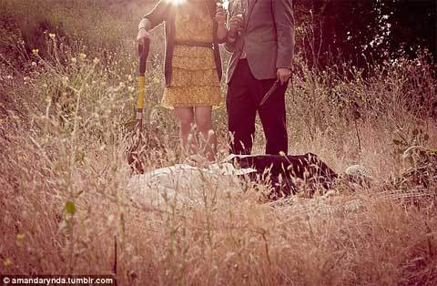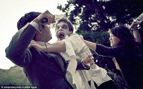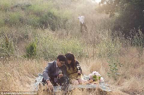 Một đôi nam nữ ở California, Mỹ đã tạo nên những khoảnh khắc khó quên khi chụp bộ ảnh cưới độc nhất vô nhị bằng cách sắp xếp để một "thây ma sống lại" xuất hiện trong những bức hình.