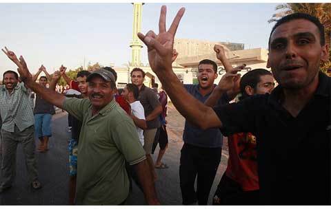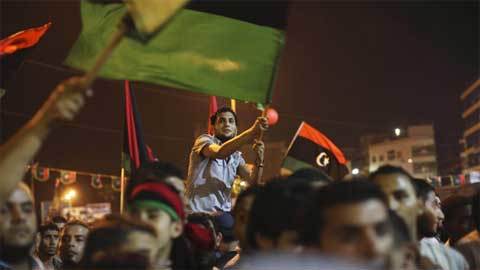 Tại Tripoli, đám đông đã kéo xuống đường ăn mừng, giật các tấm