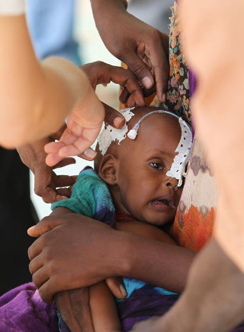 | Một em bé đang được điều trị tại bệnh xá ở một trại tỵ nạn trong thị trấn biên giới của Ethiopia. (Ảnh: THX) |