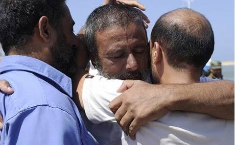 Cảnh đoàn tụ với người thân của một trong hàng nghìn tù nhân chính trị vừa được tự do tại Libya. (Ảnh: Press TV)