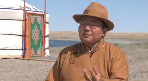 Cùng với nhóm phóng viên CNN, Tổng thống Mông Cổ hướng về những ngọn núi ở phía tây nước này và nhớ về thời một cậu bé trở thành người chăn nuôi gia súc. Trong khi máy bay chở đoàn phóng viên và Tổng thống qua nơi ông chào đời, những người du mục đã vượt đường xa xôi để tới chào đón ông.