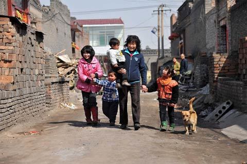 Li Yanping đón con từ trường làng Yaopu về nhà hôm 19/3.