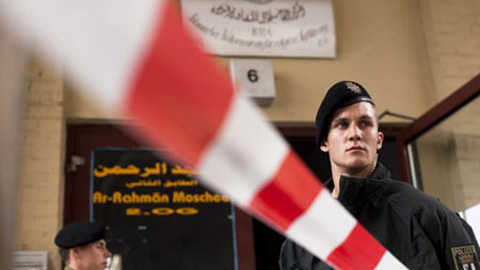 | Cảnh sát Đức chặn lối vào ở một trung tâm văn hóa Hồi giáo tại Berlin. |