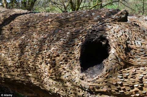 Hiện tượng lạ lùng các đồng xu ghim khắp thân cây đã được phát