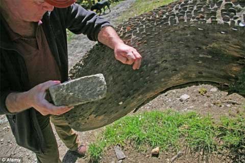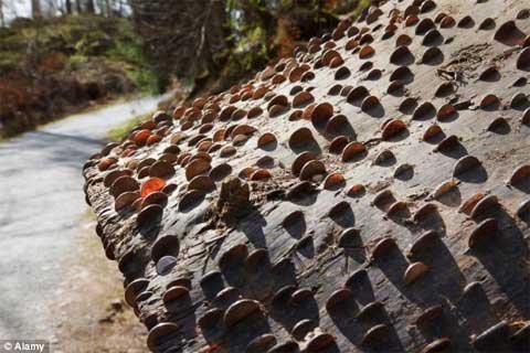 Scotland. Các đồng xu thường được người qua đường dùng đá găm vào thân cây với