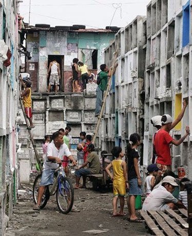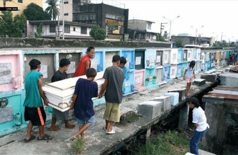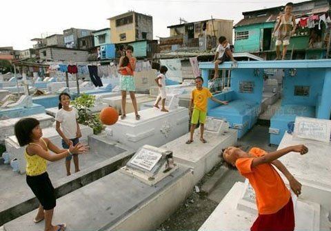 Có lẽ, nghĩa trang Paang Bundok là nơi có một không hai trên thế giới: những người nghèo khó sống chen chúc với những người đã chết. Có những lúc bên này trẻ em vừa chào đời, thì bên kia có người đang được chôn cất. Trẻ con từ nhỏ đã được dạy tôn trọng người đã khuất, không được chơi đùa hay làm ồn ở xung quanh nơi diễn ra tang lễ.