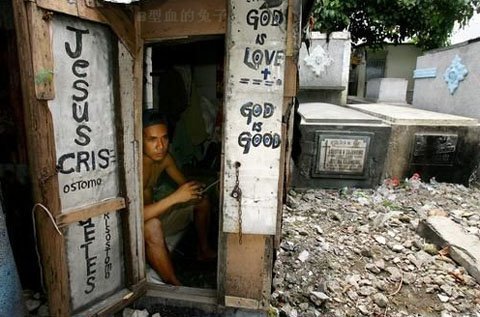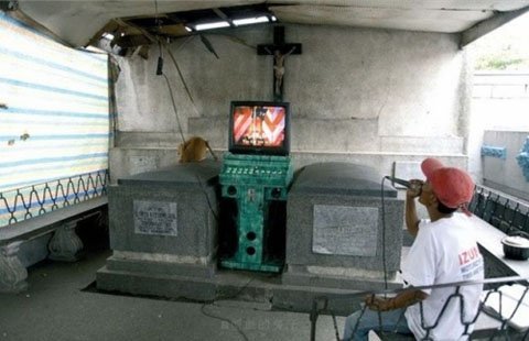 Những người dân nghèo ở nghĩa trang Paang Bundok tại Philippines đã tồn tại như vậy từ thế hệ này qua thế hệ khác. Mặc dù cuộc sống khó khăn nhưng những lúc nghỉ ngơi, nhiều người cũng tự tìm cách giải trí cho mình như hát karaoke, chơi bi-a, điện tử...